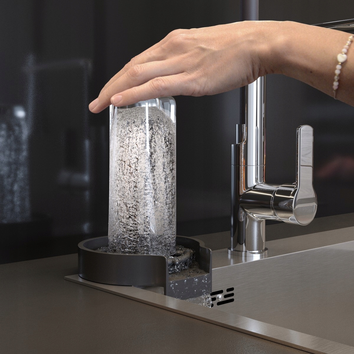 Un accesoriu de bucătărie inovator conceput pentru spălarea automată a paharelor,