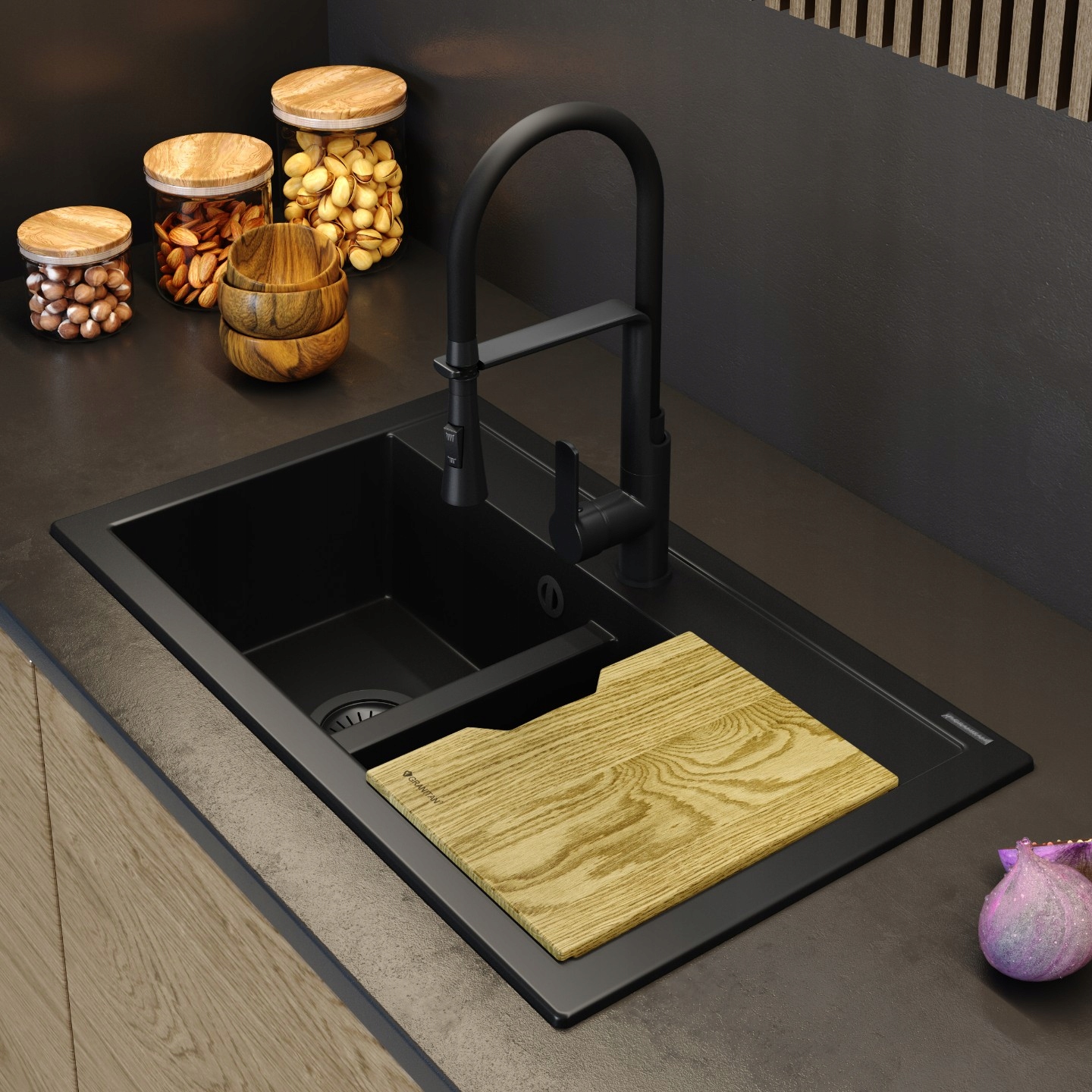 Placa de lemn dedicată este un complement practic și estetic pentru chiuvetă și spațiul bucătăriei. Inserția facilitează spălarea și crește confortul în timpul activităților zilnice.