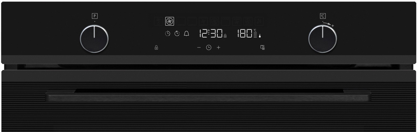 Fațada din sticlă neagră și mânerele retractabile au un aspect foarte modern, iar controlul tactil împreună cu ecranul LED fac utilizarea cuptorului să fie simplă și intuitivă.