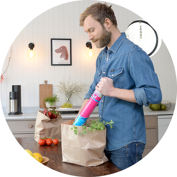 Dacă îți place apa necarbogazoasă, a fi eco este floare la ureche. Torni apă de la robinet și gata. Dar ce faci dacă ai chef de o apă carbogazoasă? Cu cilindrul roz cu gaz CO2 Quick Connect și carbonatoarele SodaStream poți fi eco chiar și atunci când bei apă carbogazoasă. Proaspetele bule nu necesită o sticlă de unică folosință.