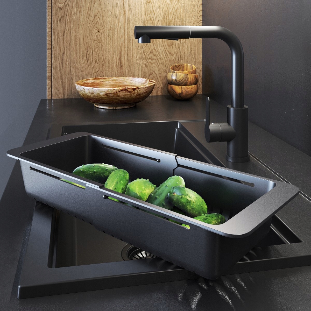 COȘ PLIABIL NEGRU SCURGĂTOR DE PLASTIC PENTRU CHIUVETĂ STRECURĂTOR