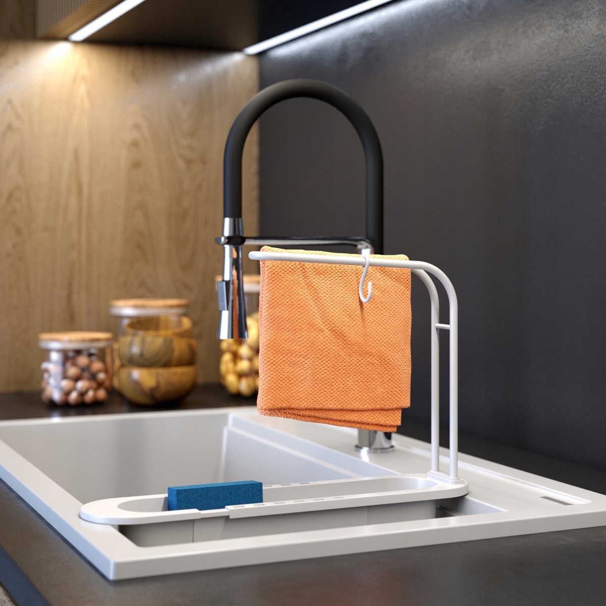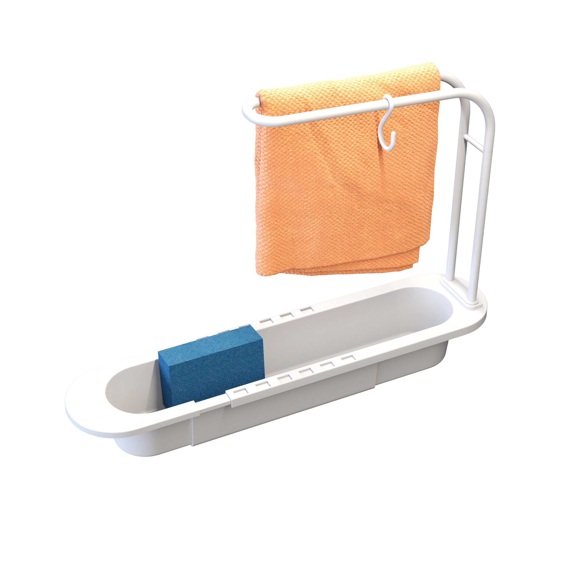 Organizator pliabil pentru chiuvetă, coș alb, uscător din plastic