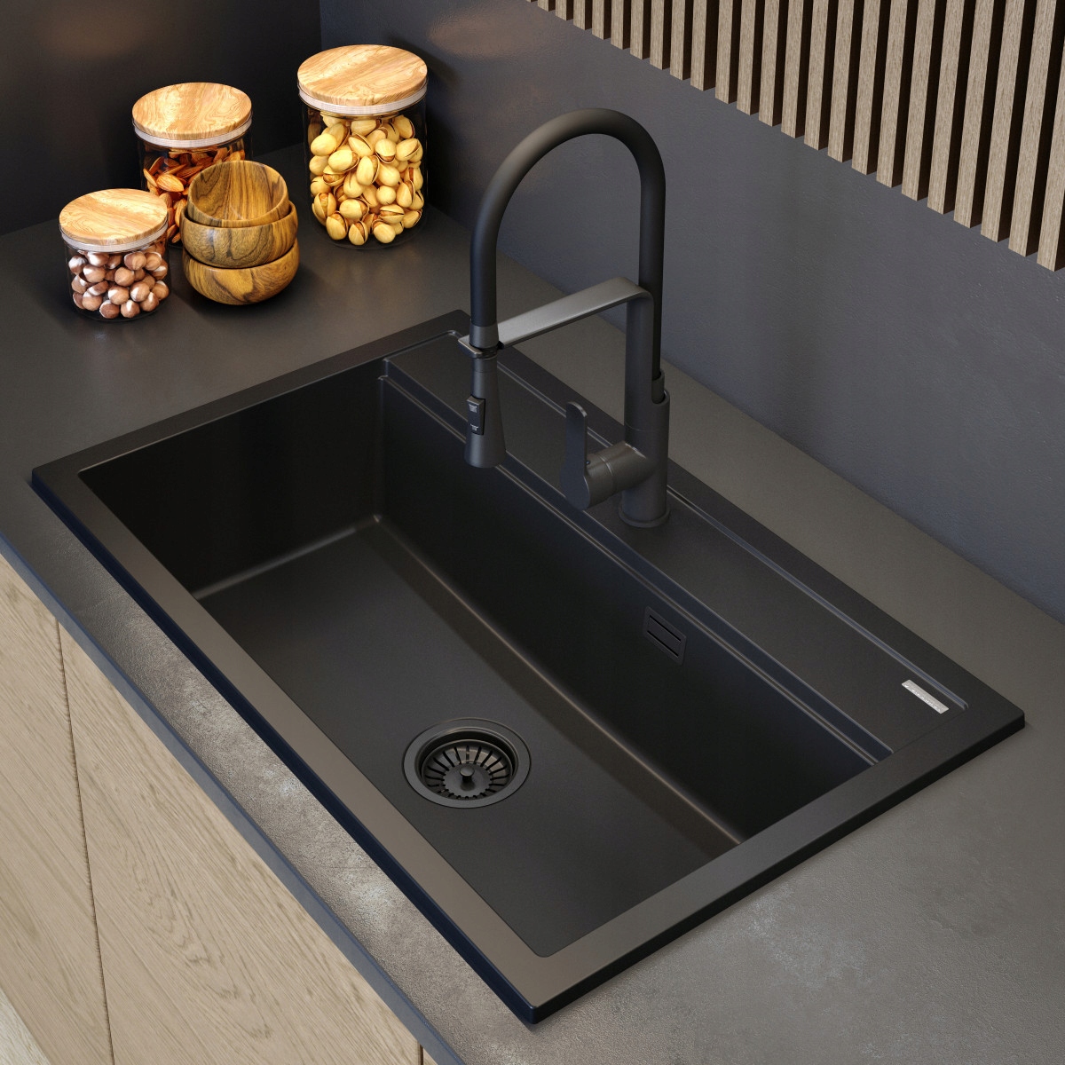 Modelul rectangular, realizat dintr-un material durabil,se integrează perfect cu suprafața chiuvetei și completează efectul vizual al bucătăriei.