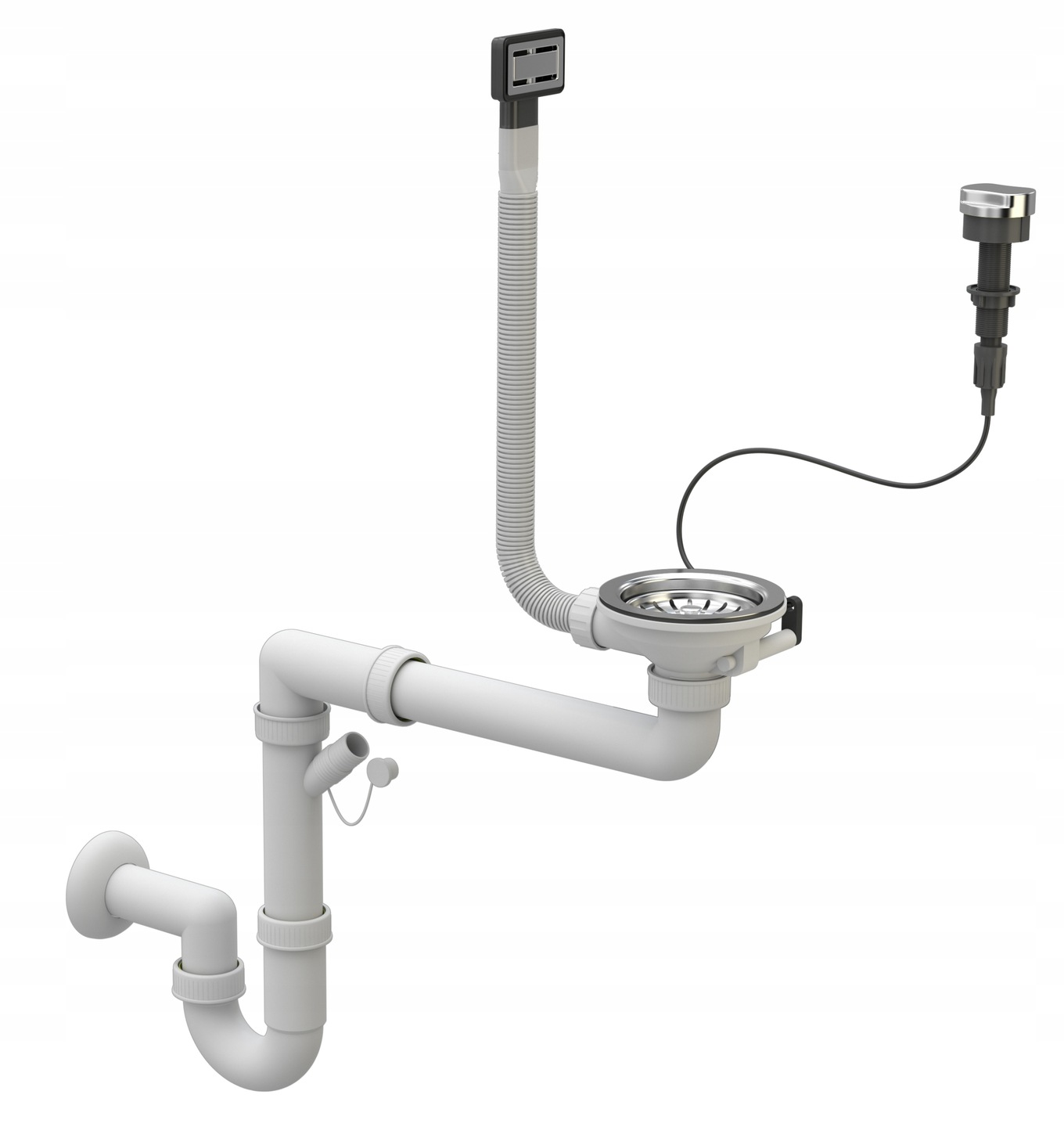 Sifon automat pentru chiuvetă cu o singură cuvă și preaplin dreptunghiular