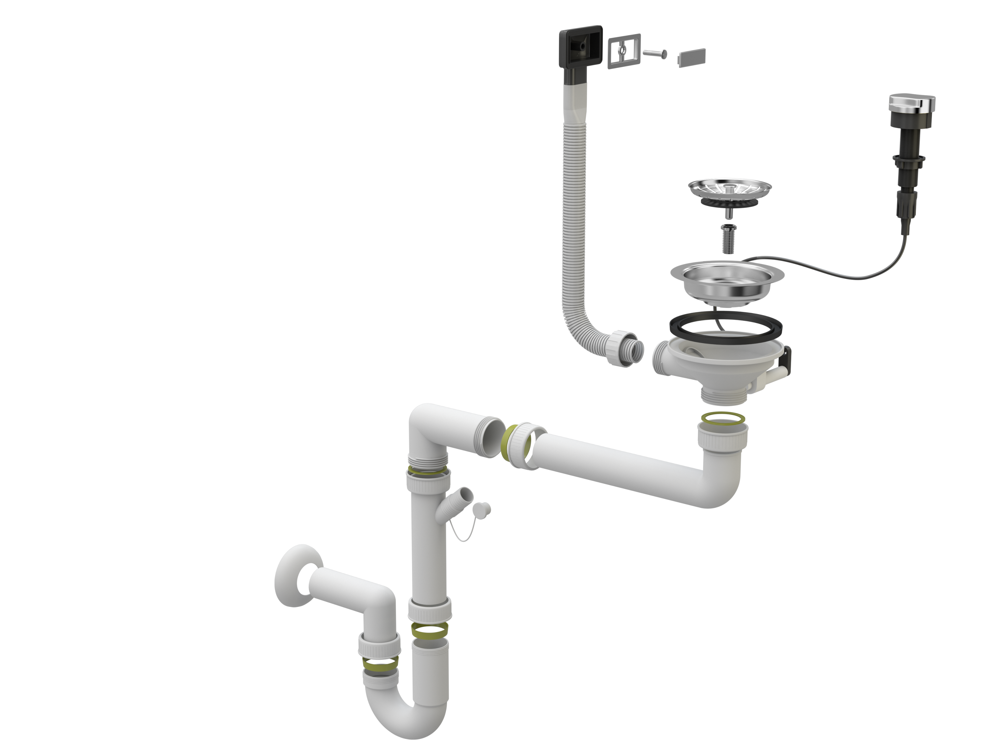 Sifon automat pentru chiuvetă cu o singură cuvă și preaplin dreptunghiular