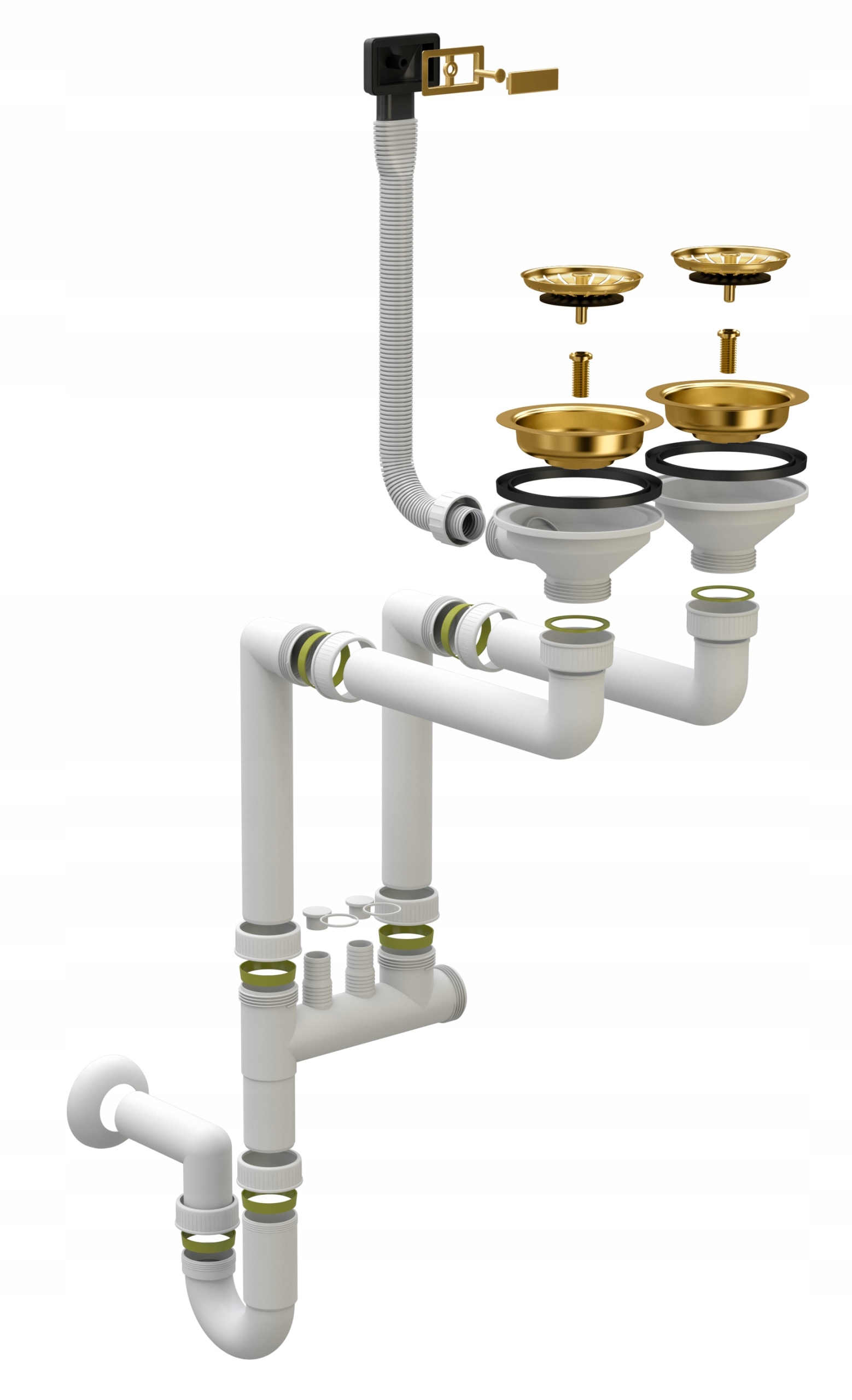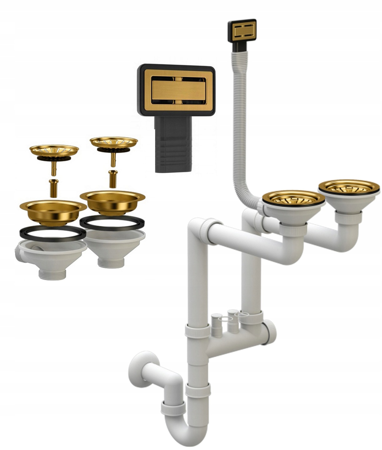 0 OPINII PENTRU Sifon auriu economisitor de spațiu manual pentru chiuvetă cu două cuve - preaplin dreptunghiular