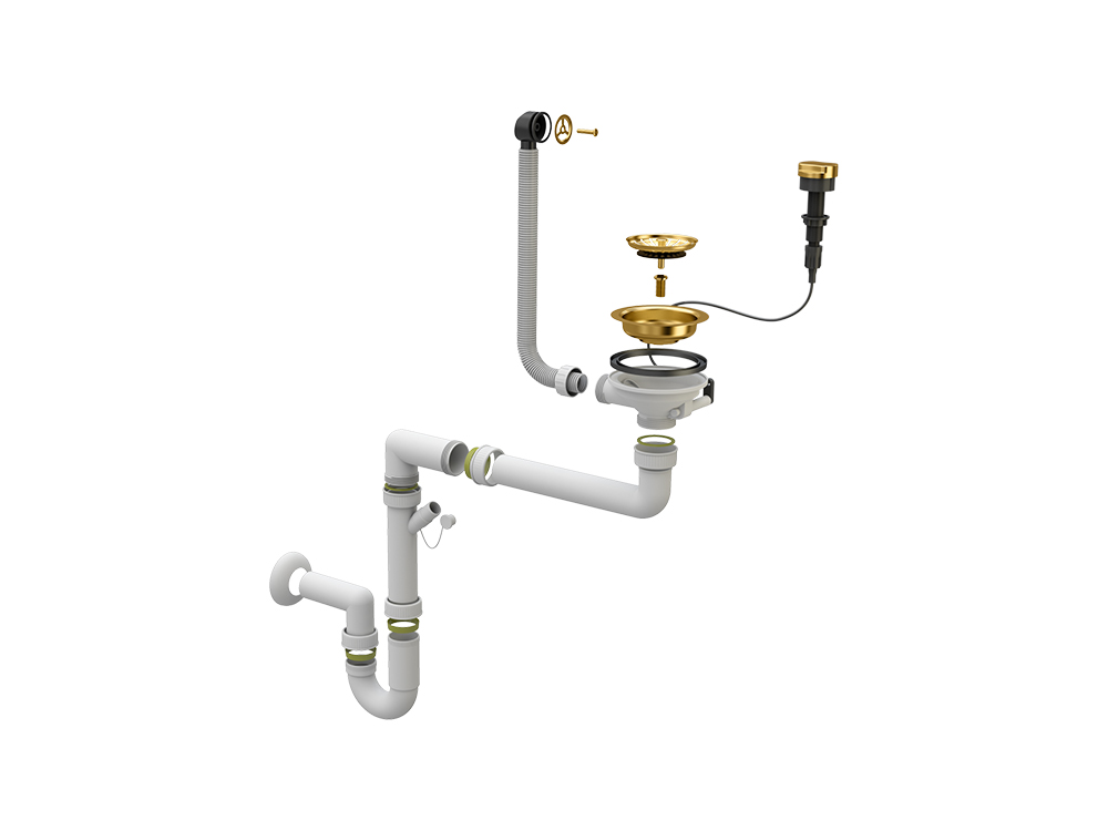 Sifon foarte ușor de montat cu un finisaj elegant auriu