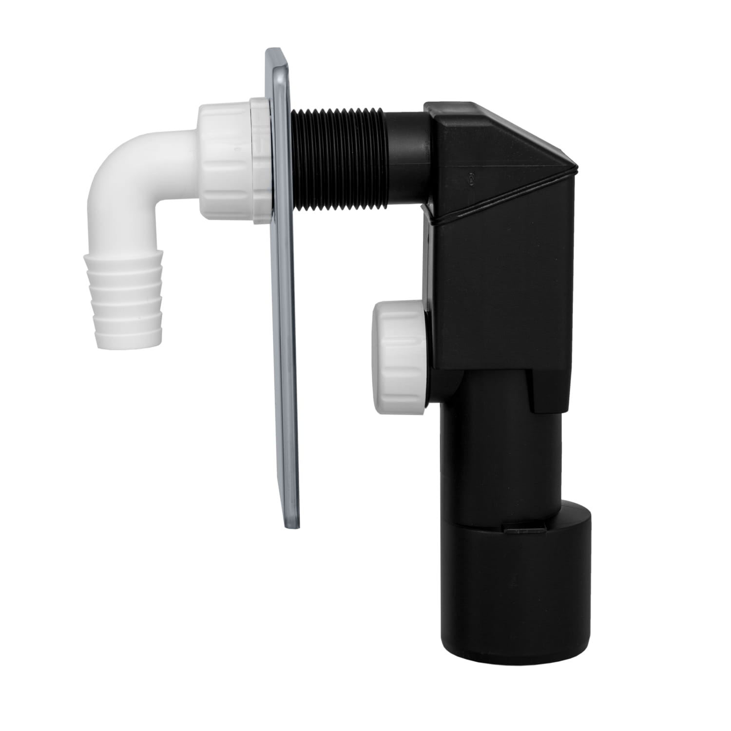 Sifon de mașină de spălat încastrat de culoare albă, realizat din material PP. Calitate înaltă. Racord către canalizare 40-50mm. Pentru conectarea mașinii de spălat sau uscătorului.