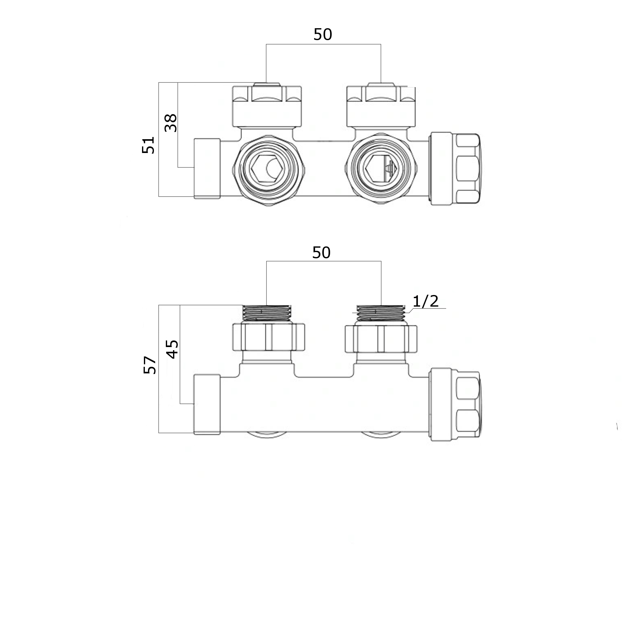 VANĂ DE RADIATOR PEX ALAMĂ CAP 1/2 NEGRU MAT