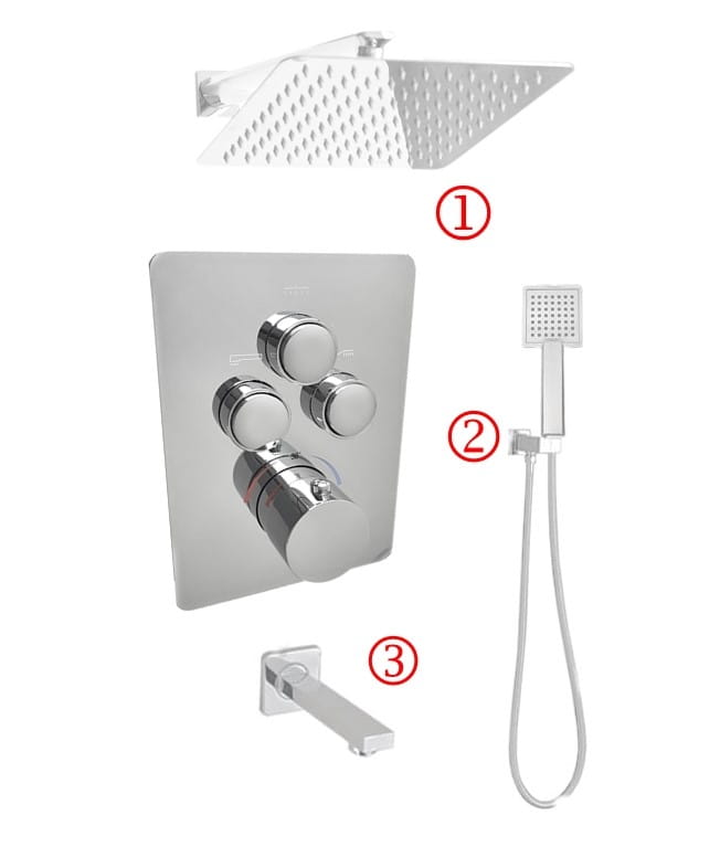 EXE 3 Baterie de duș îngropată crom + cioc pentru cadă