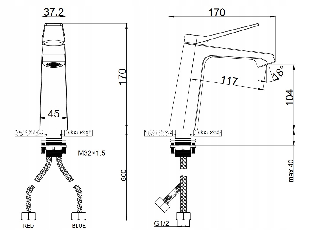 Distanța de la centru până la extremitatea gurii de scurgere: 117 mm