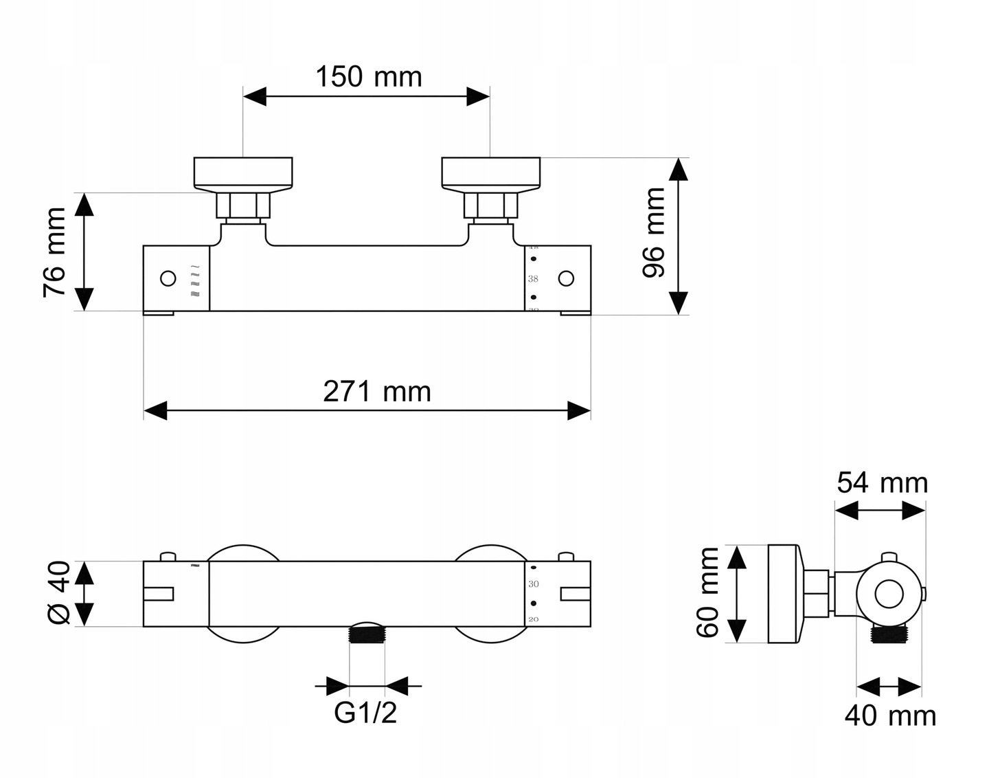 Include: baterie termostatică, duș fix, suport, furtun de duș, pară de duș, comutator, furtun pentru conectarea bateriei