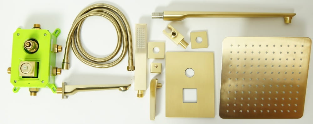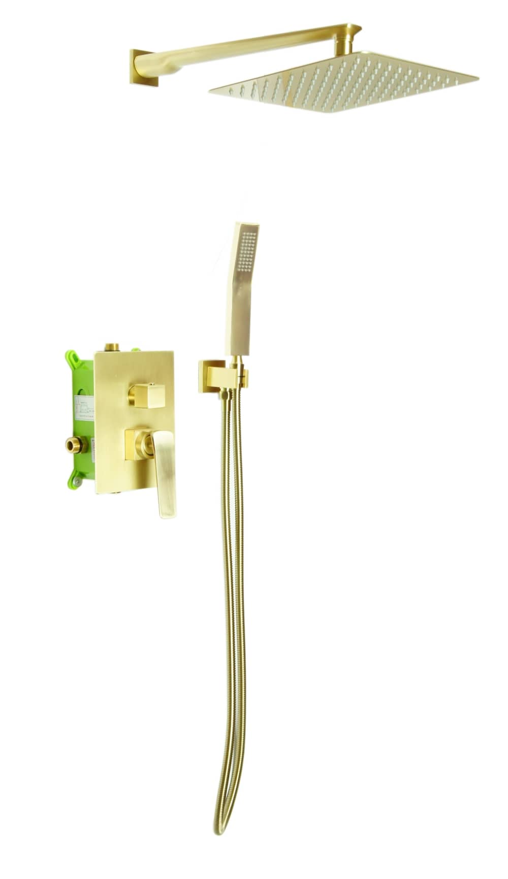 Setul auriu este format din bateria de duș îngropată și o pompă de ploaie practică.