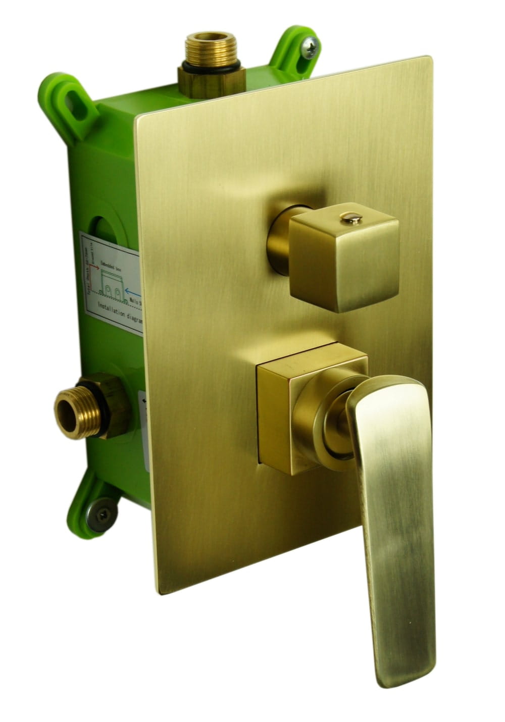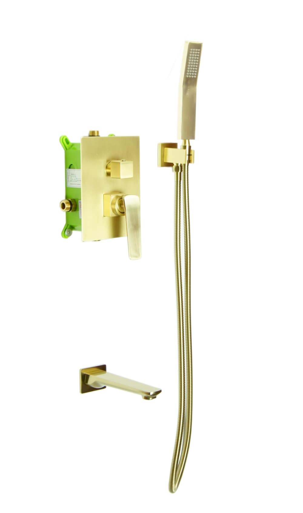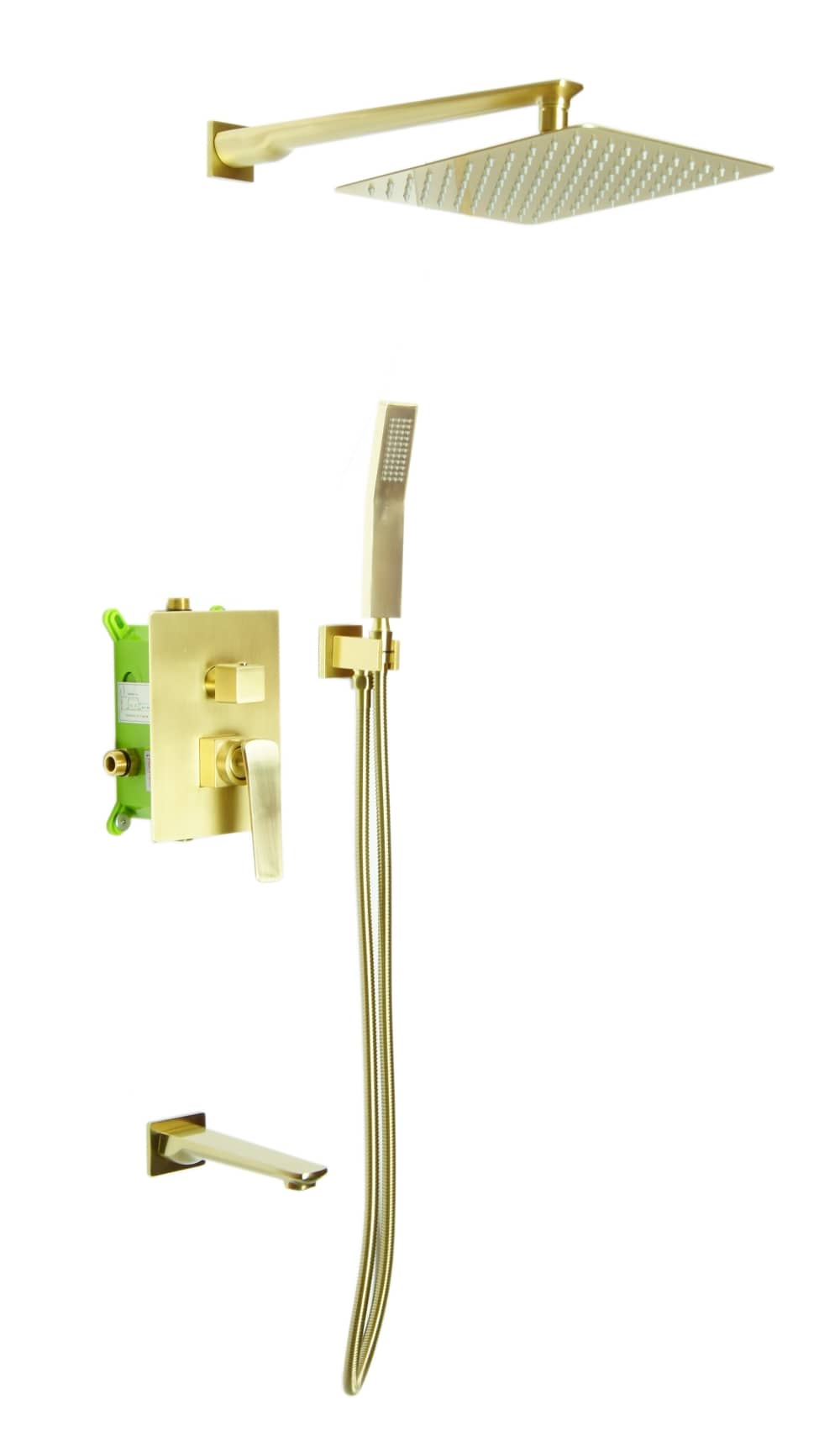 Setul auriu este format din bateria de duș îngropată și o pompă de ploaie practică.