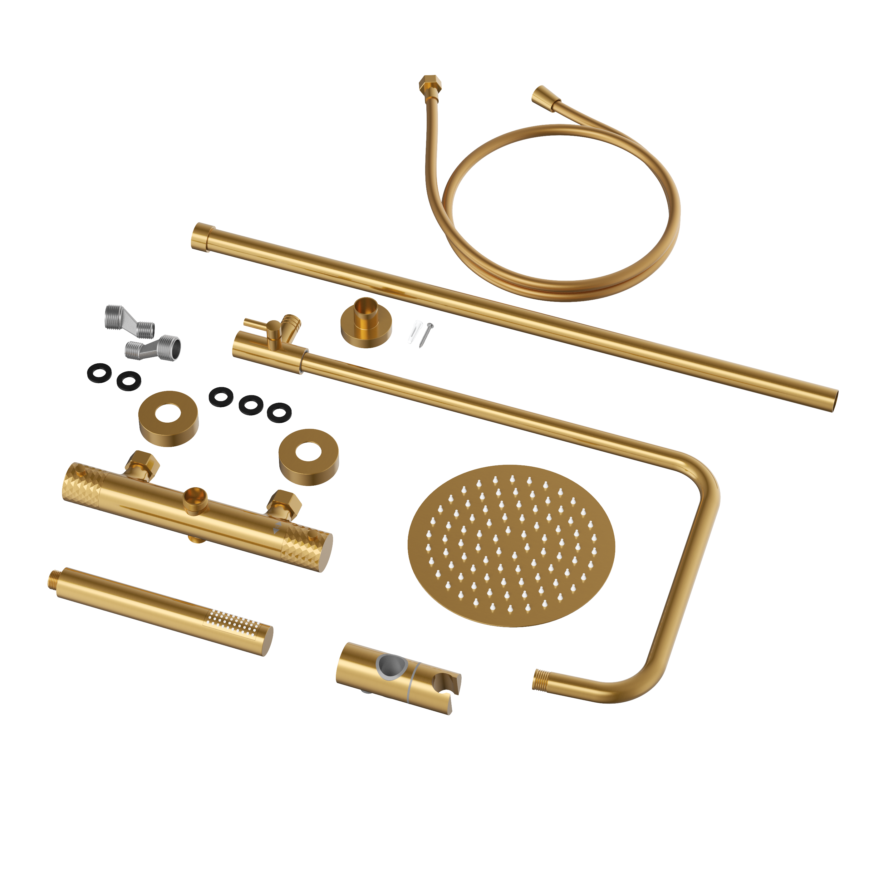 0 OPINII PENTRU Set de duș termostat cu pară de duș și cap de duș tip ploaie GLAMI BRUSHED GOLD