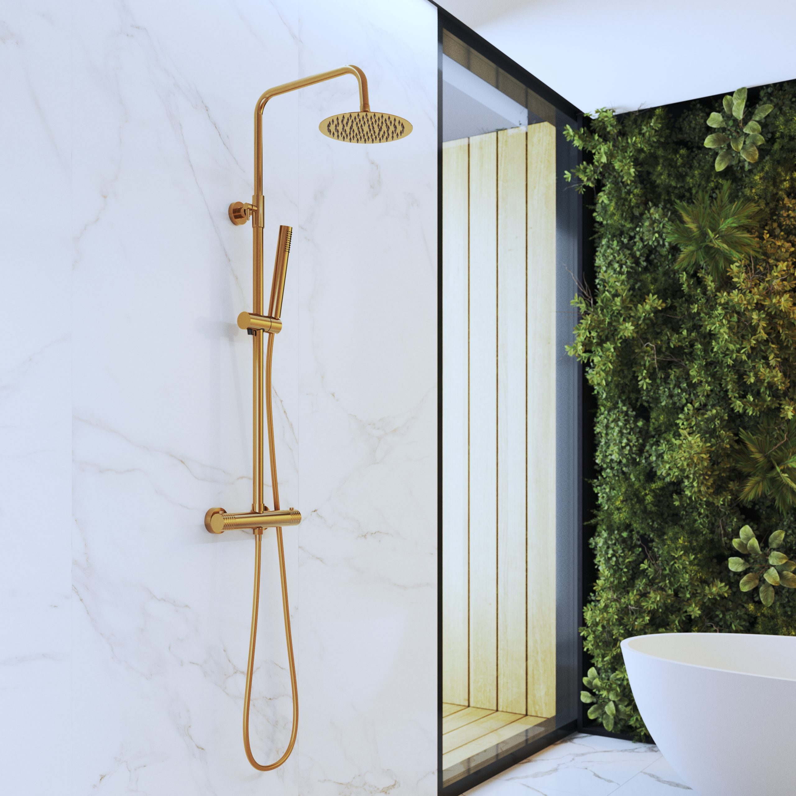 0 OPINII PENTRU Set de duș termostat cu pară de duș și cap de duș tip ploaie GLAMI BRUSHED GOLD