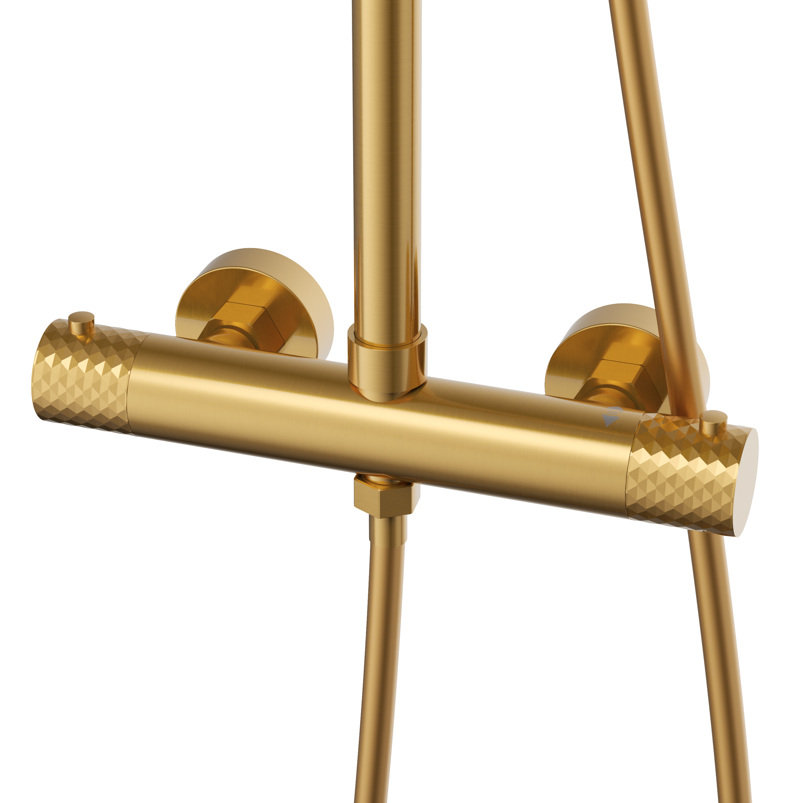 Set de duș termostat cu pară de duș și cap de duș tip ploaie GLAMI BRUSHED GOLD