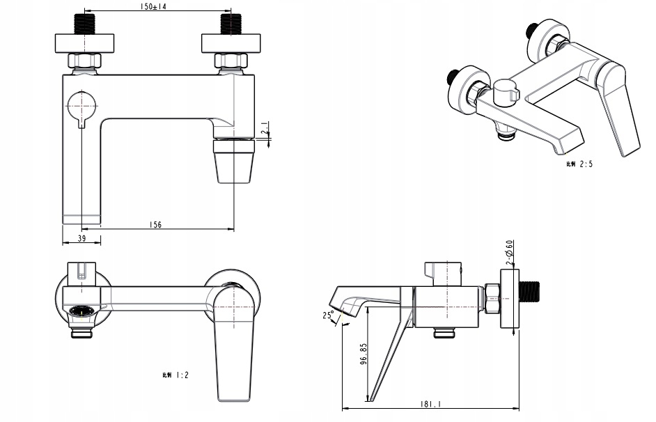 Raza de acțiune a gura de scurgere de la perete până la perlator: 181,1 mm