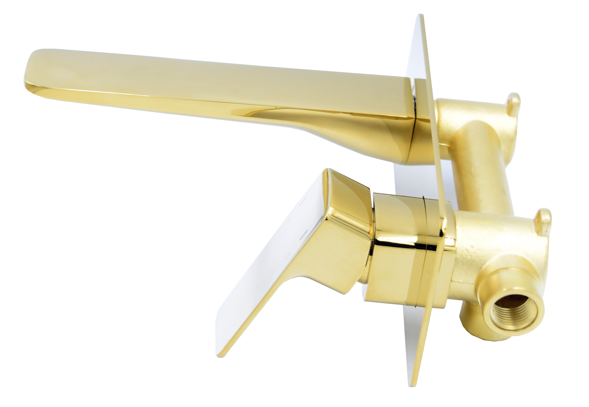 Baterie de lavoar tip stativ Castres de înaltă calitate, fabricată din alamă, de culoare aurie. Suprafața bateriei este rezistentă la decolorare și temperaturi ridicate, cu cartuș ceramic. Orificiu standard de montaj 35 mm. Aerator pentru amestecarea apei cu aer.