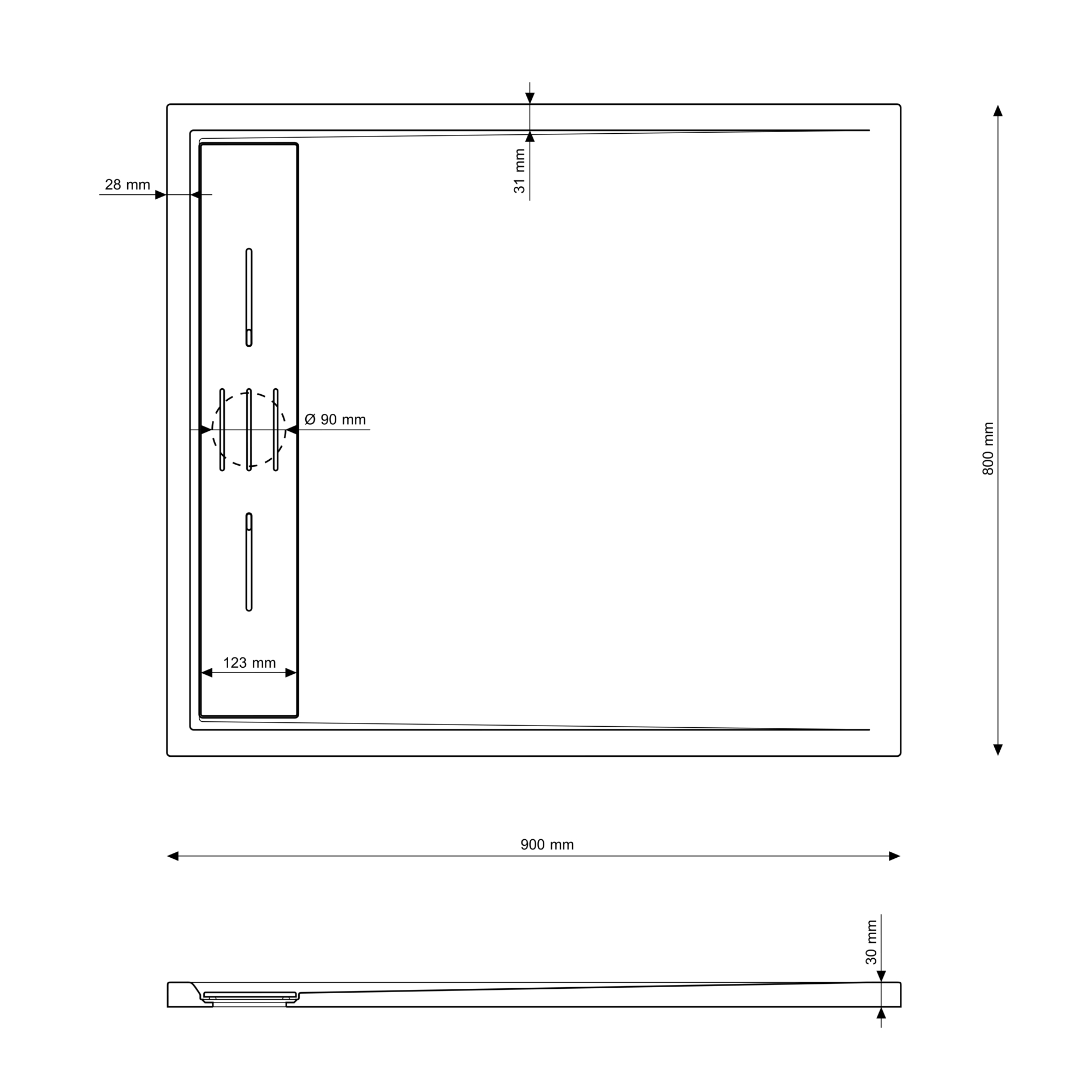 Dimensiuni: 900x800x30 mm