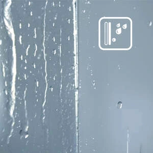 Sticla cabinei este acoperită cu stratul inovator hidrofob Active Cover, care respinge moleculele de apă de pe suprafața sticlei și astfel reduce semnificativ formarea calcarului. Stratul este aplicat în timpul procesului de producție a sticlei, ceea ce îi garantează durabilitatea și fiabilitatea pe termen lung.