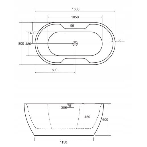 Setul include cadă, sifon de scurgere, dop click-clack cu preaplin.