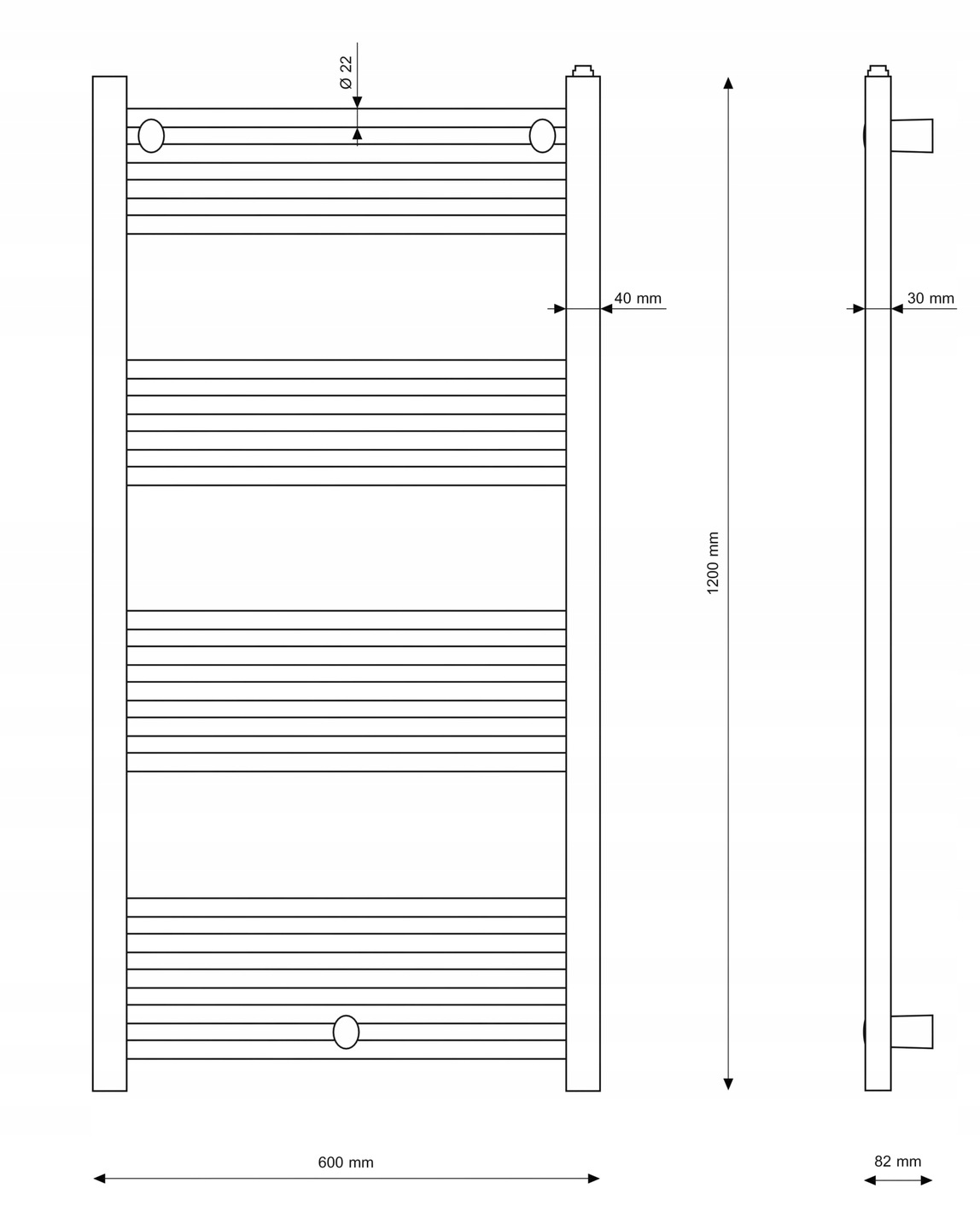 RADIATOR DE BAIE PUERTO 60x120 NEGRU