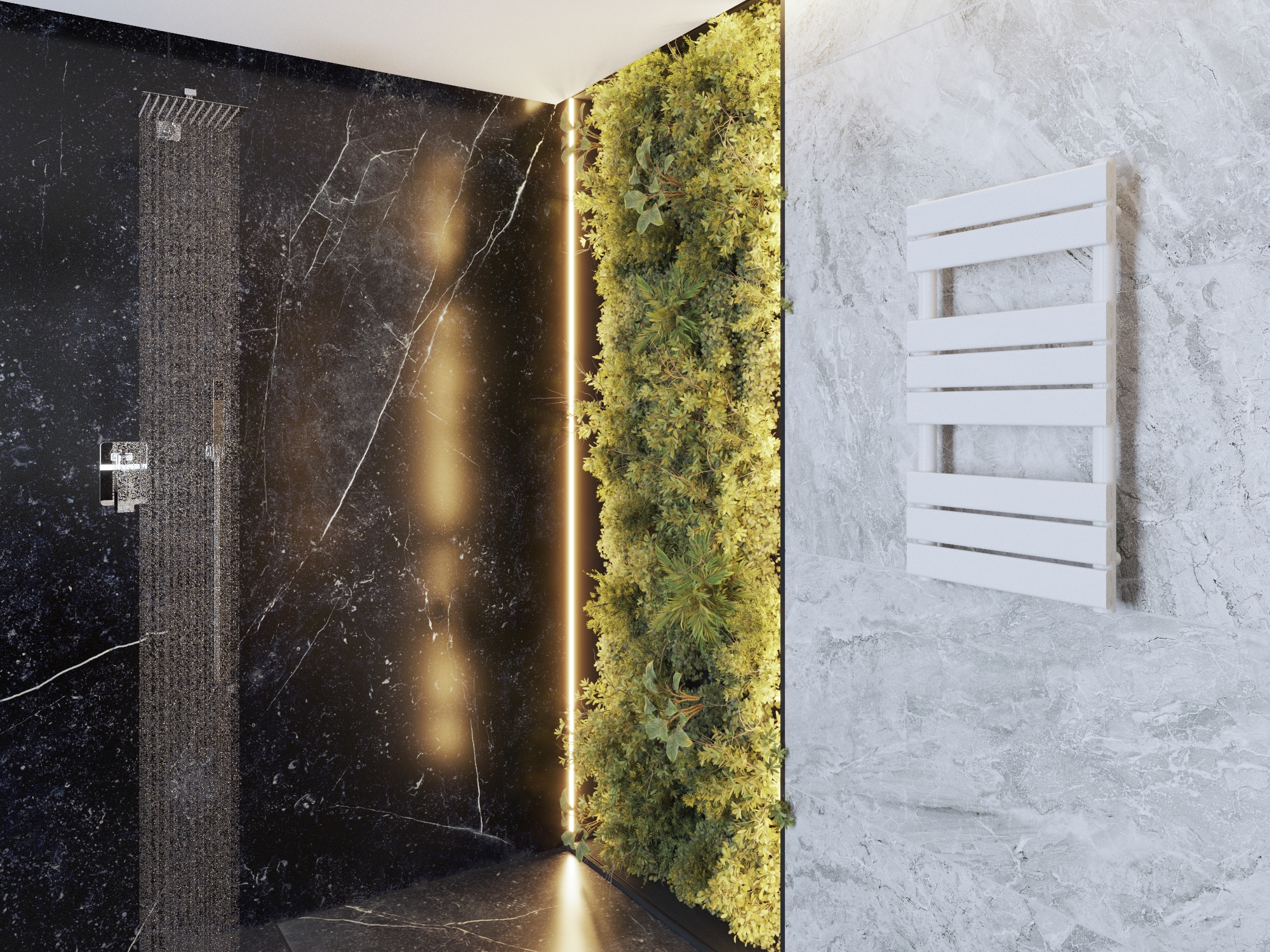 Radiatorul de baie OSLO în stil modern, care se integrează perfect în decorul oricărei băi. Combinația ideală între funcția practică și estetică – se dovedește a fi un element decorativ excelent și asigură confort termic în baie pentru multe sezoane.