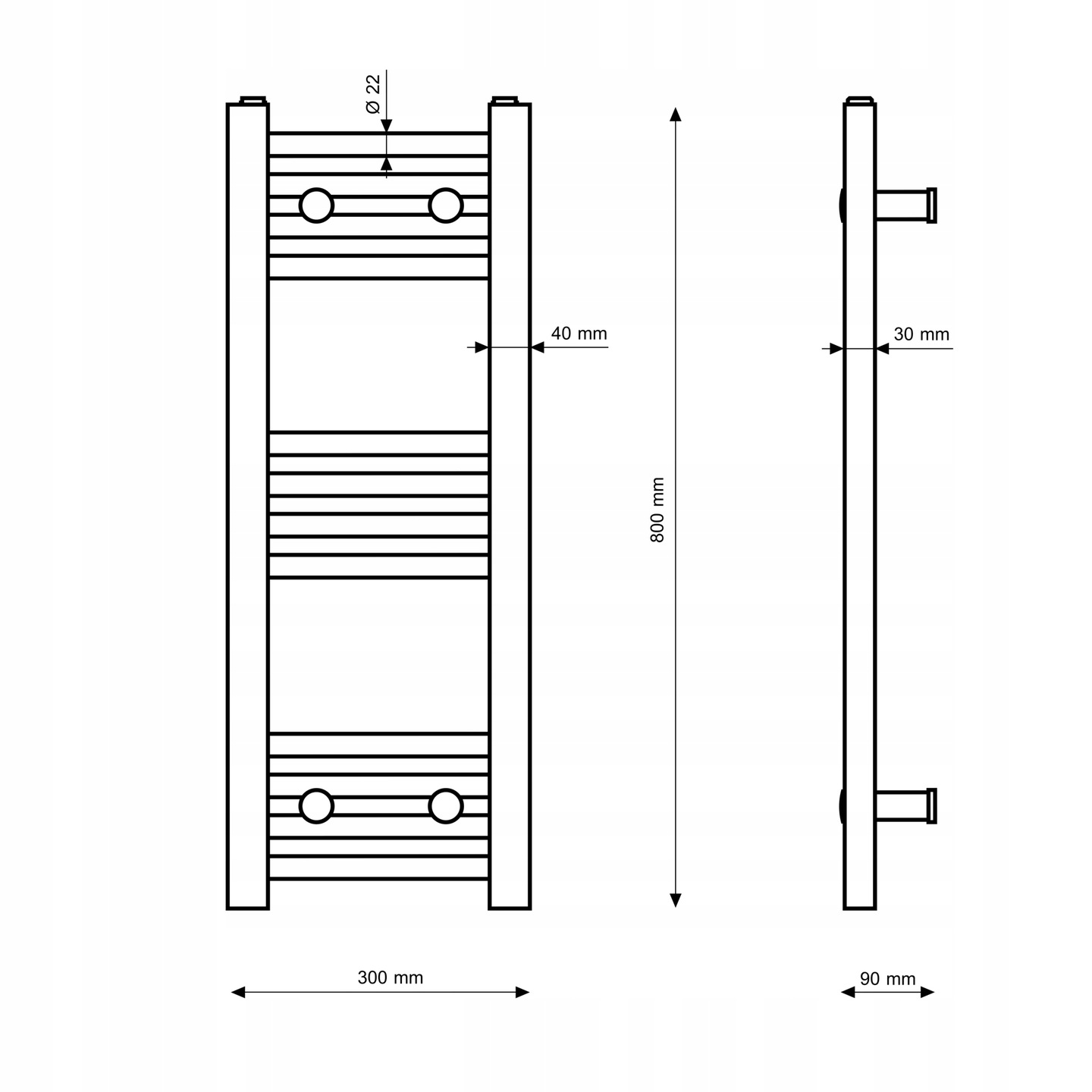 RADIATOR DE BAIE ALB TIP SCARĂ 30x80 cm, INSTALARE 180 BRENO