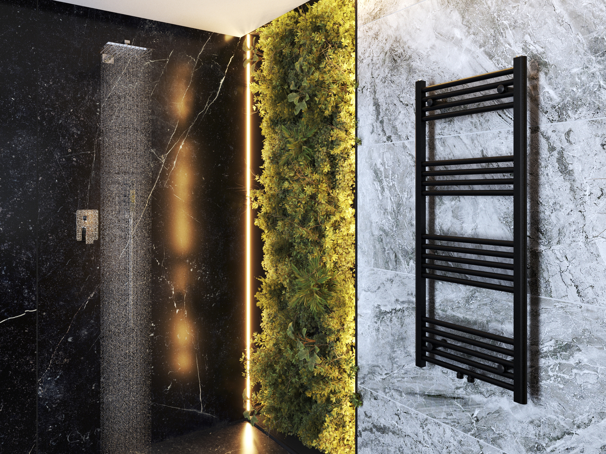 Funcțional, radiator de baie negru, în stil scară, este soluția ideală pentru interioare moderne. Modelul Raven oferă încălzire eficientă și durabilitate pe termen lung. Designul său minimalist adaugă interiorului un caracter deosebit și eleganță. Radiatorul este compatibil atât cu sistemele de încălzire centrală, cât și cu o rezistență electrică opțională, permițând astfel utilizarea sa pe tot parcursul anului.
