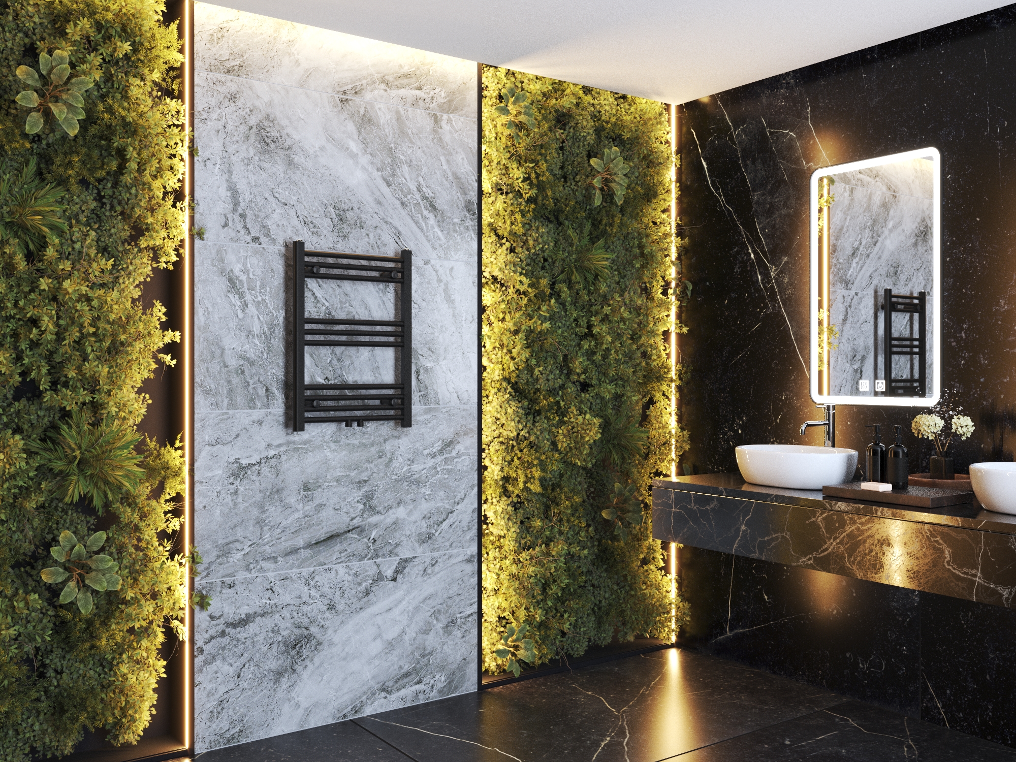 Funcțional, radiator negru pentru baie în stil scară reprezintă soluția ideală pentru interioare moderne. Modelul Raven asigură încălzire eficientă și durabilitate de lungă durată. Designul său minimalist adaugă interiorului caracter și eleganță. Radiatorul este compatibil atât cu conectarea la sistemul de încălzire centrală, cât și cu opțiunea unei rezistențe electrice, permițându-i să fie utilizat pe tot parcursul anului.