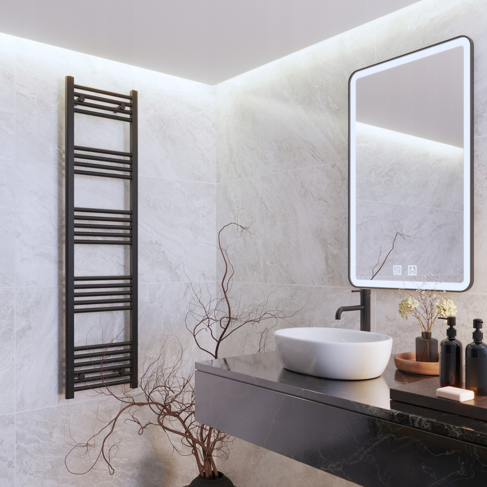 Radiatoarele moderne tip scară sunt o soluție populară în multe băi contemporane. Ele îmbină funcționalitatea cu estetica, oferind căldură și în același timp servind ca suport pentru uscarea prosoapelor sau a pieselor de îmbrăcăminte.