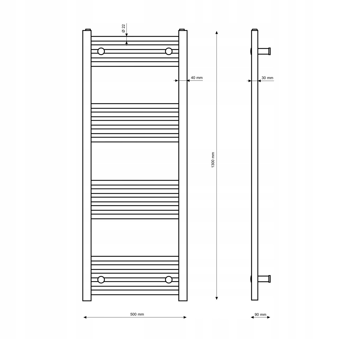 RADIATOR DE BAIE NEGRU TIP SCARĂ 50x130 cm CALORIFER MONTAJ 180 BRENO