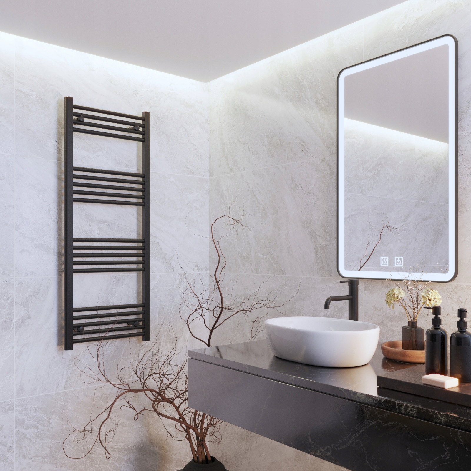 RADIATOR DE BAIE NEGRU TIP SCARĂ 50x130 cm CALORIFER MONTAJ 180 BRENO