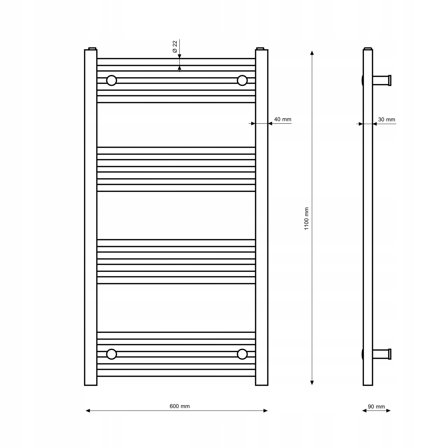 RADIATOR PENTRU BAIE NEGRU TIP SCARĂ 60x110 cm MONTAJ 180 BRENO