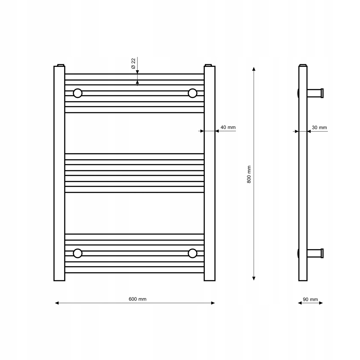 RADIATOR DE BAIE NEGRU TIP SCARĂ 60x80 cm CALORIFER MONTAJ 180 BRENO