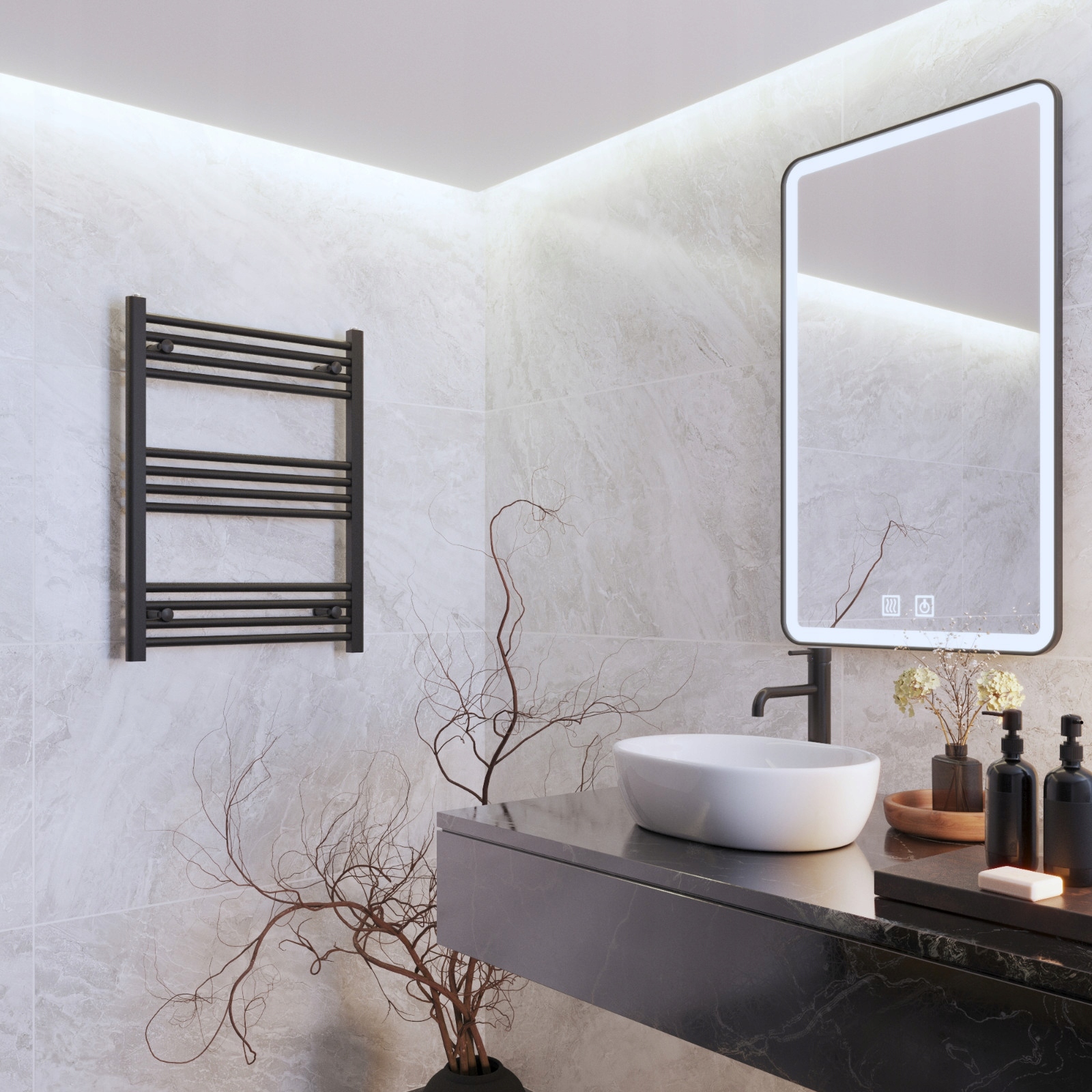 RADIATOR DE BAIE NEGRU TIP SCARĂ 60x80 cm CALORIFER MONTAJ 180 BRENO