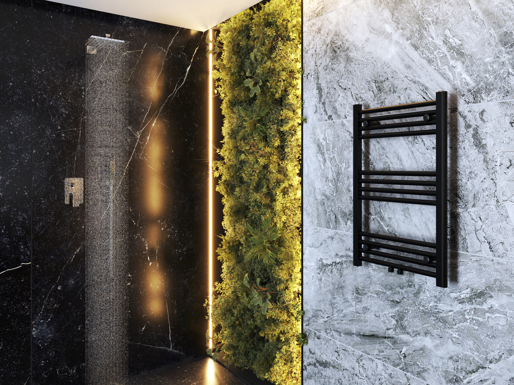 Funcțional, radiator de baie negru stil scară este soluția ideală pentru interioarele moderne. Modelul Raven oferă încălzire eficientă și durabilitate pentru ani de zile. Designul său minimalist adaugă interiorului un caracter și eleganță. Radiatorul este adaptat atât pentru conectarea la sistemul de încălzire centrală, cât și pentru o rezistență electrică opțională, ceea ce permite utilizarea sa pe tot parcursul anului.