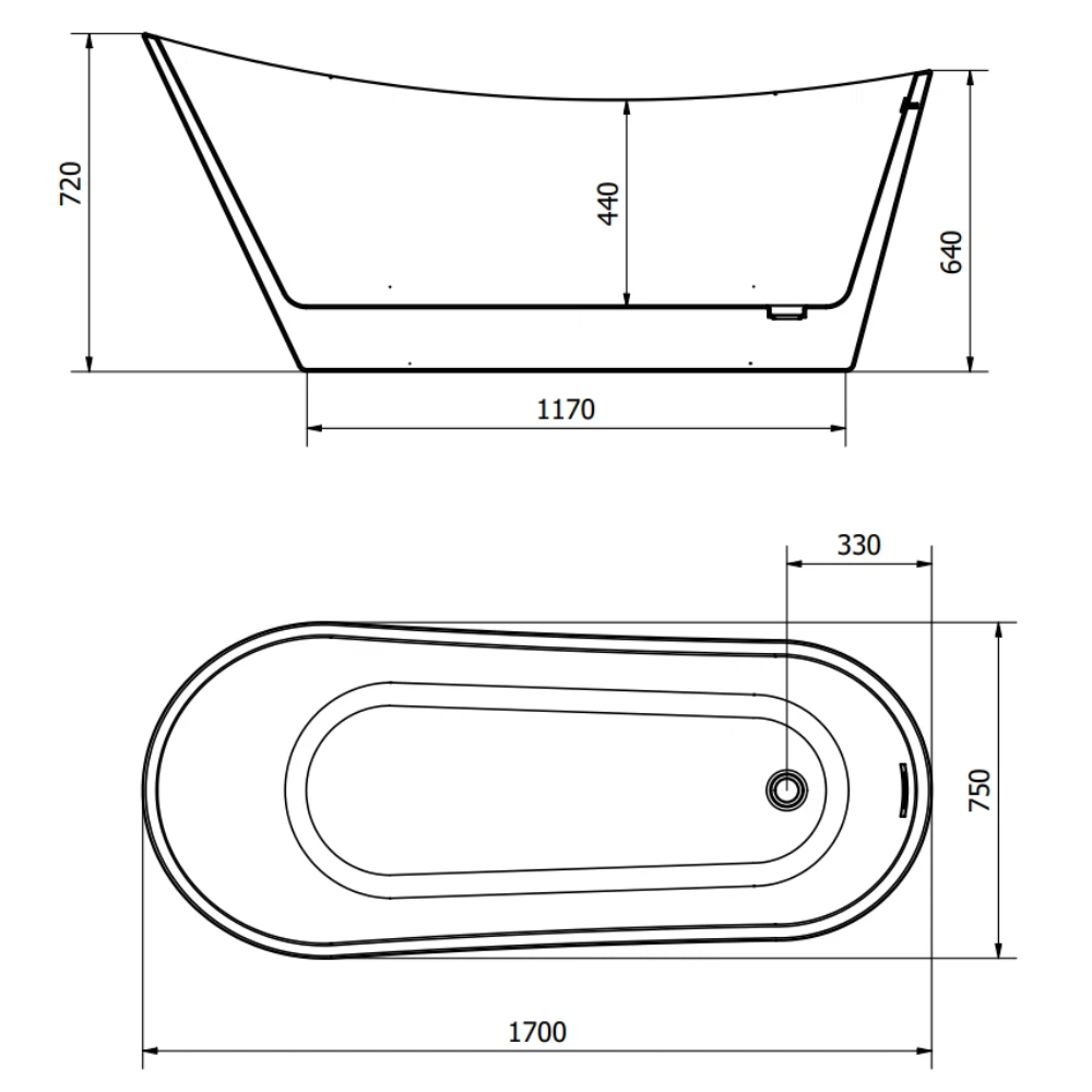 Cadă de baie ovală freestanding ALBĂ modernă din acril riva 170x75