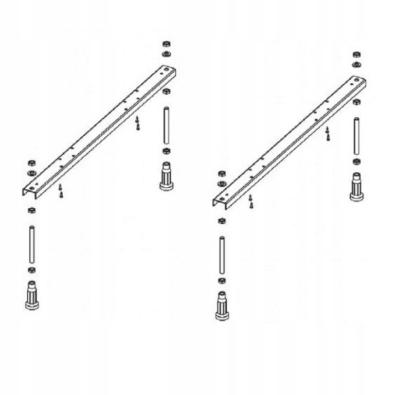 Set de picioare de montaj destinat instalării căzilor acrilice. Este compus din două grinzi de susținere din oțel și patru picioare reglabile. Grinzile sunt fabricate din metal rezistent, asigurând stabilitatea și durabilitatea construcției.