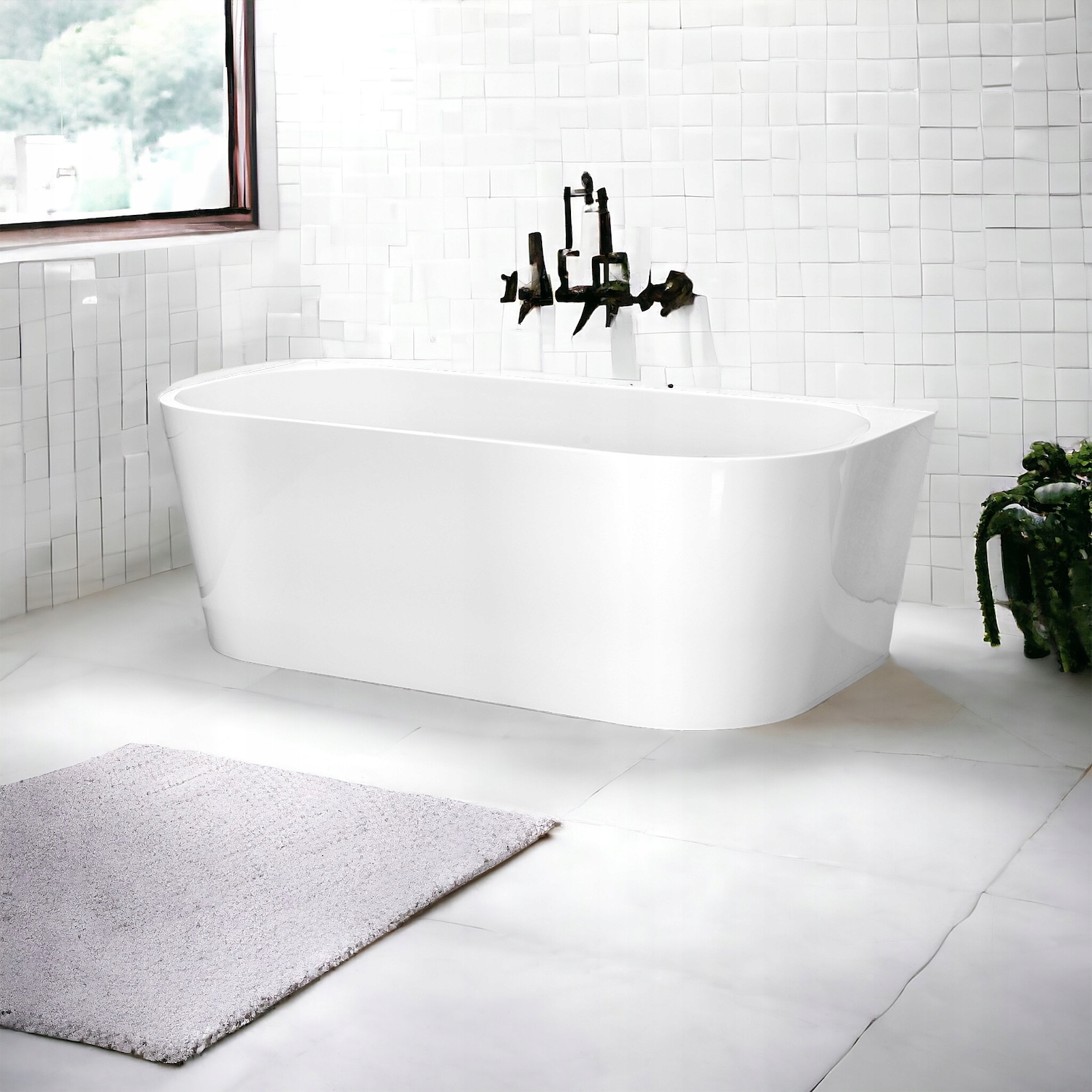 Cada baie freestanding ovală albă 170x75 cm BORGO ajustabilă perete