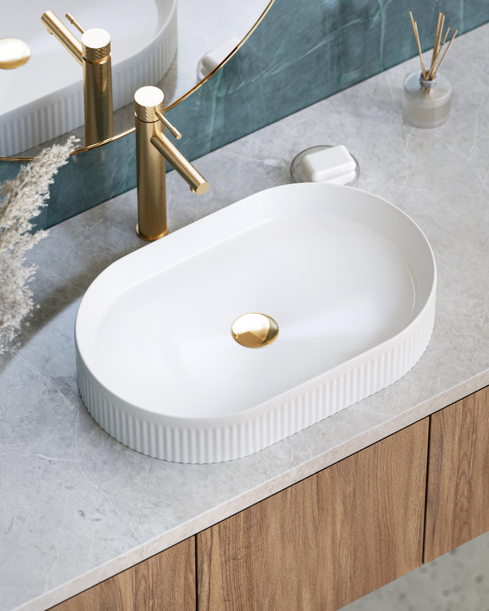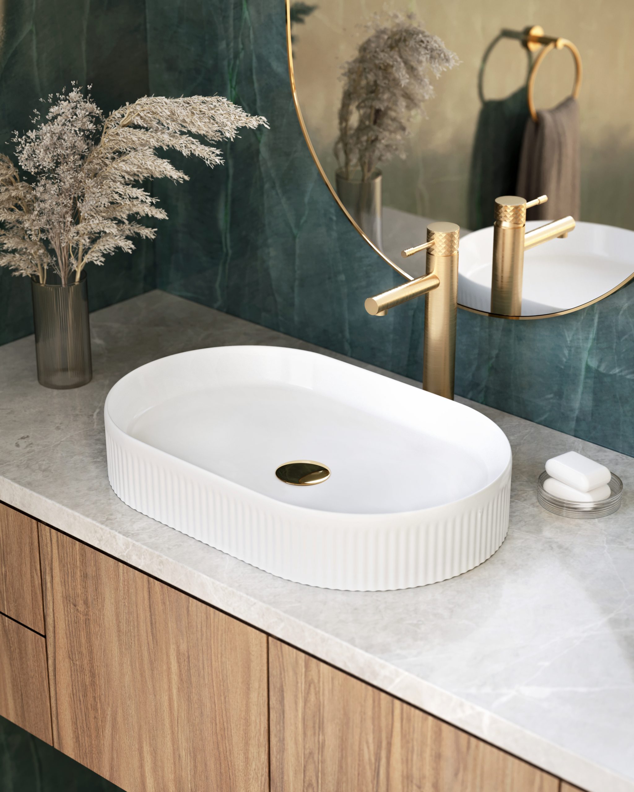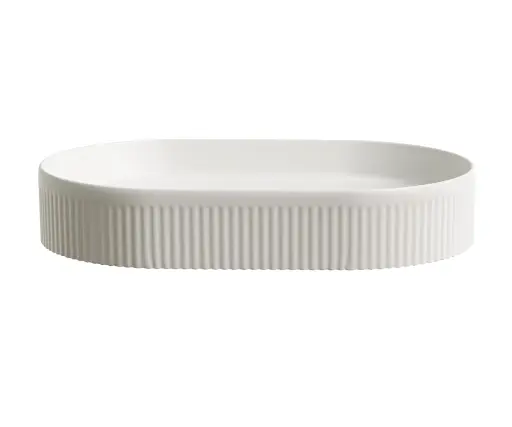Lavoar ceramică oval premium Nora alb canelat pentru blat