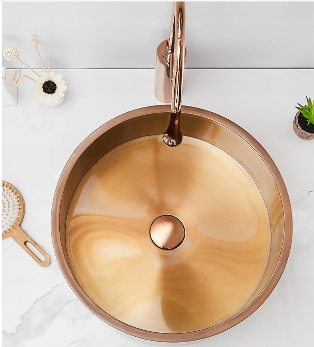 Kea este un lavoar rotund, modern, montat pe blat. Modelul este fabricat din oțel inoxidabil acoperit cu un strat PVD (Depunere Fizică de Vapori). Această tehnologie modernă este folosită pentru colorarea suprafețelor metalice, oferindu-le o coloristică interesantă și neobișnuită.