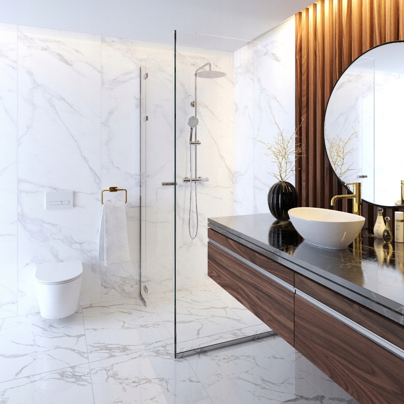 Designul clasic al lavoarului se îmbină cu multe stiluri interioare și nu perturbă conceptele de amenajare.