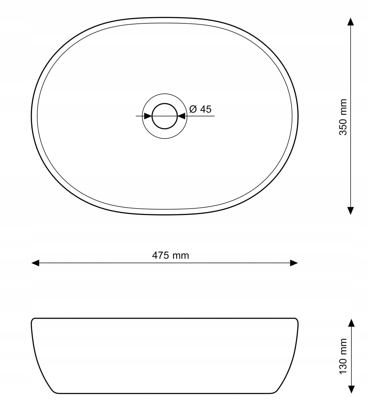 Diametrul scurgerii: 45 mm