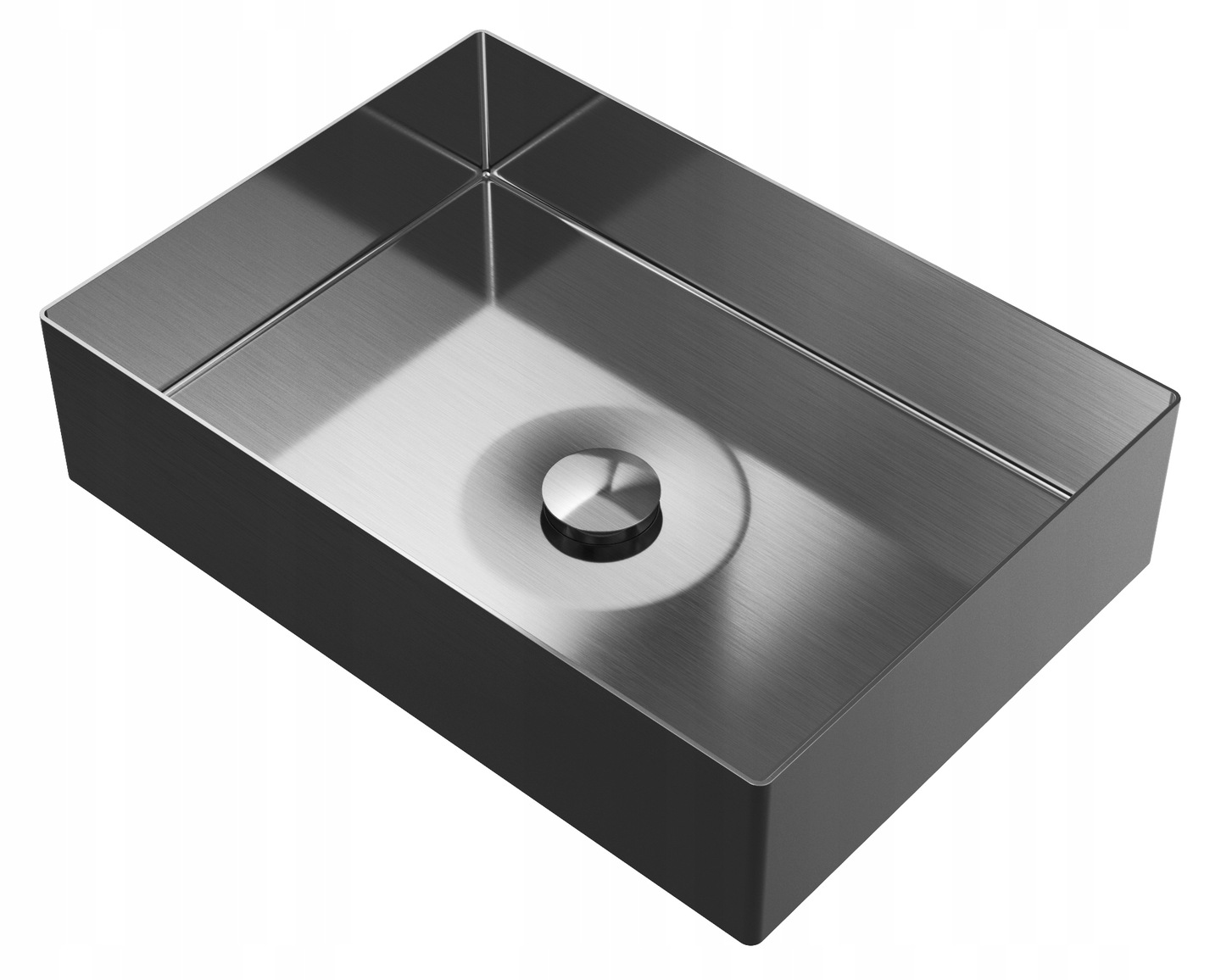 Lavoar dreptunghiular din oțel negru de blat + ventil clic-clac LAJA