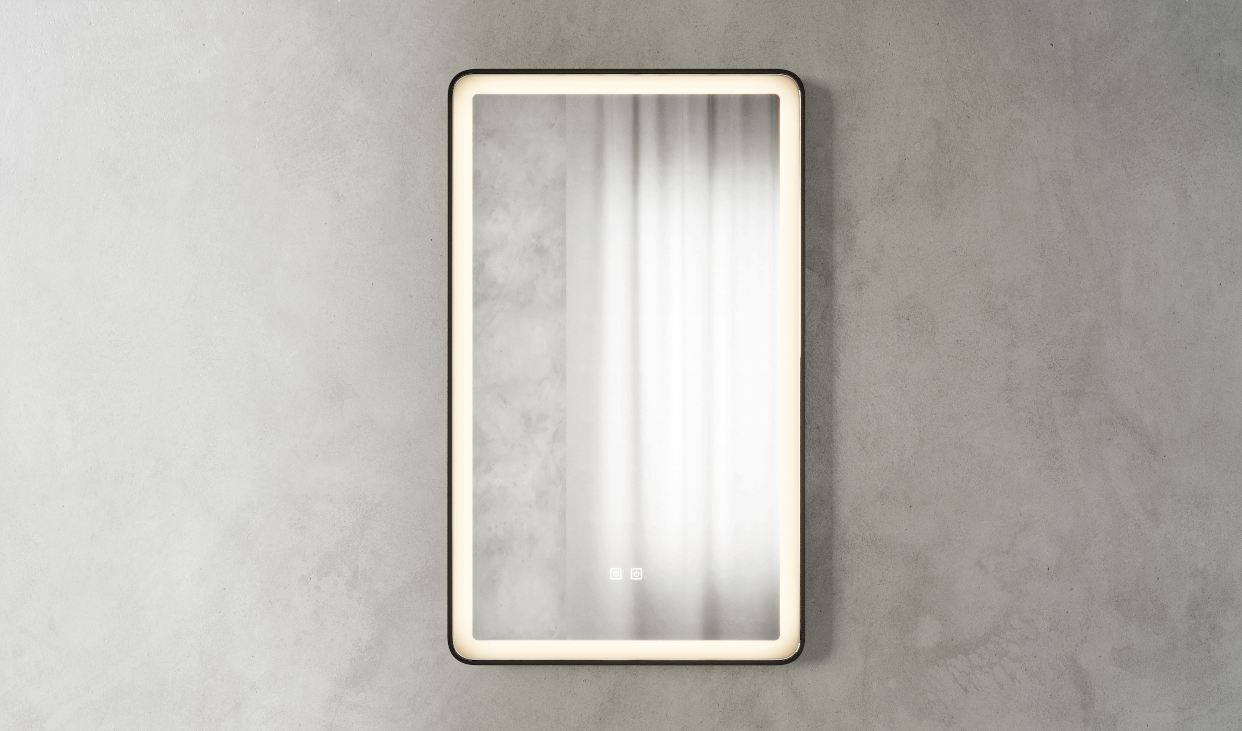 - În jurul perimetrului oglinzii este montată o bandă luminoasă bicoloră, care permite alegerea între lumină caldă (3000K) și rece (6000K), oferind posibilitatea de a adapta atmosfera luminoasă preferințelor individuale.