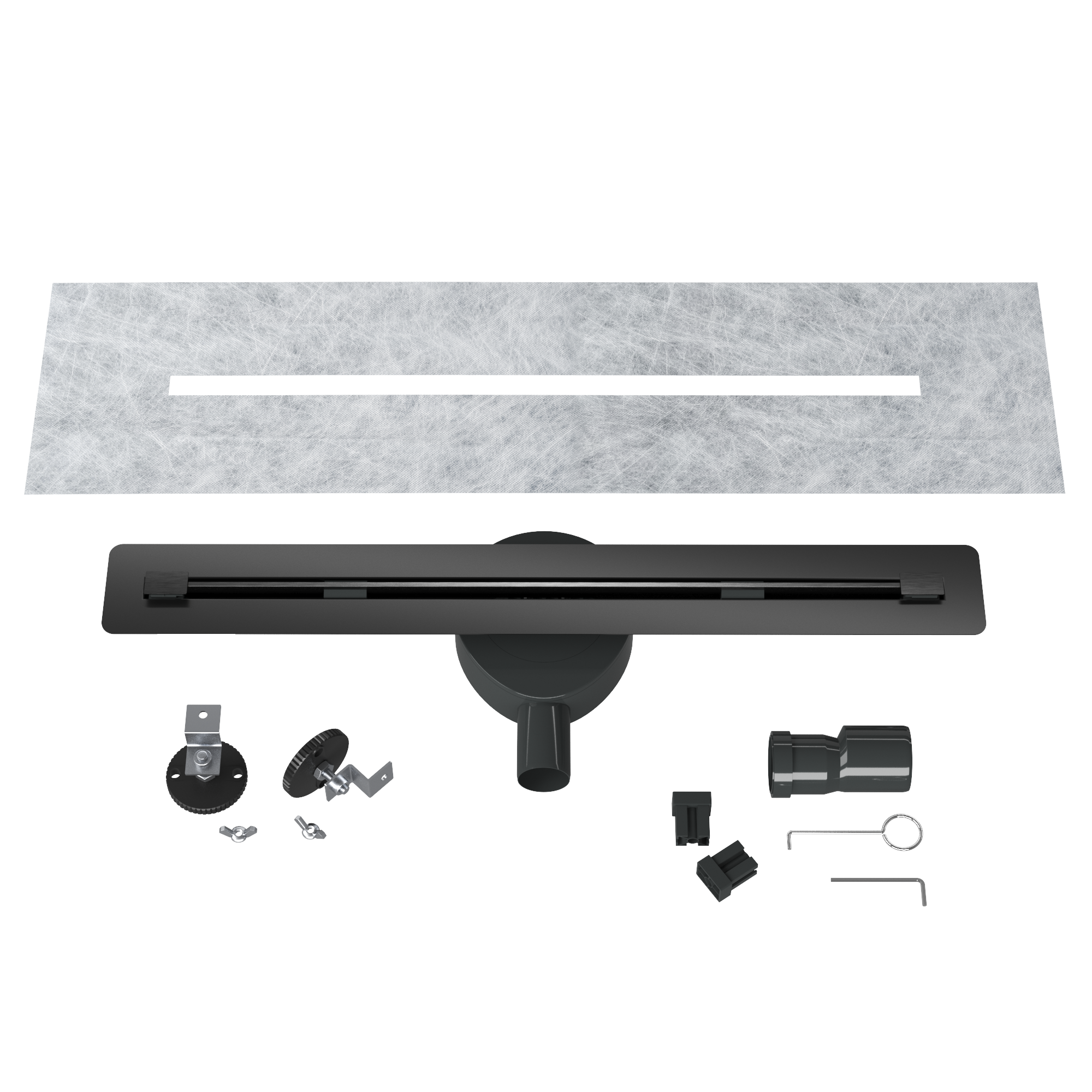 Rigolă Duș LUNO Negru 60 cm Oțel Sifon Pardoseală Plăci a fost adăugat în coș