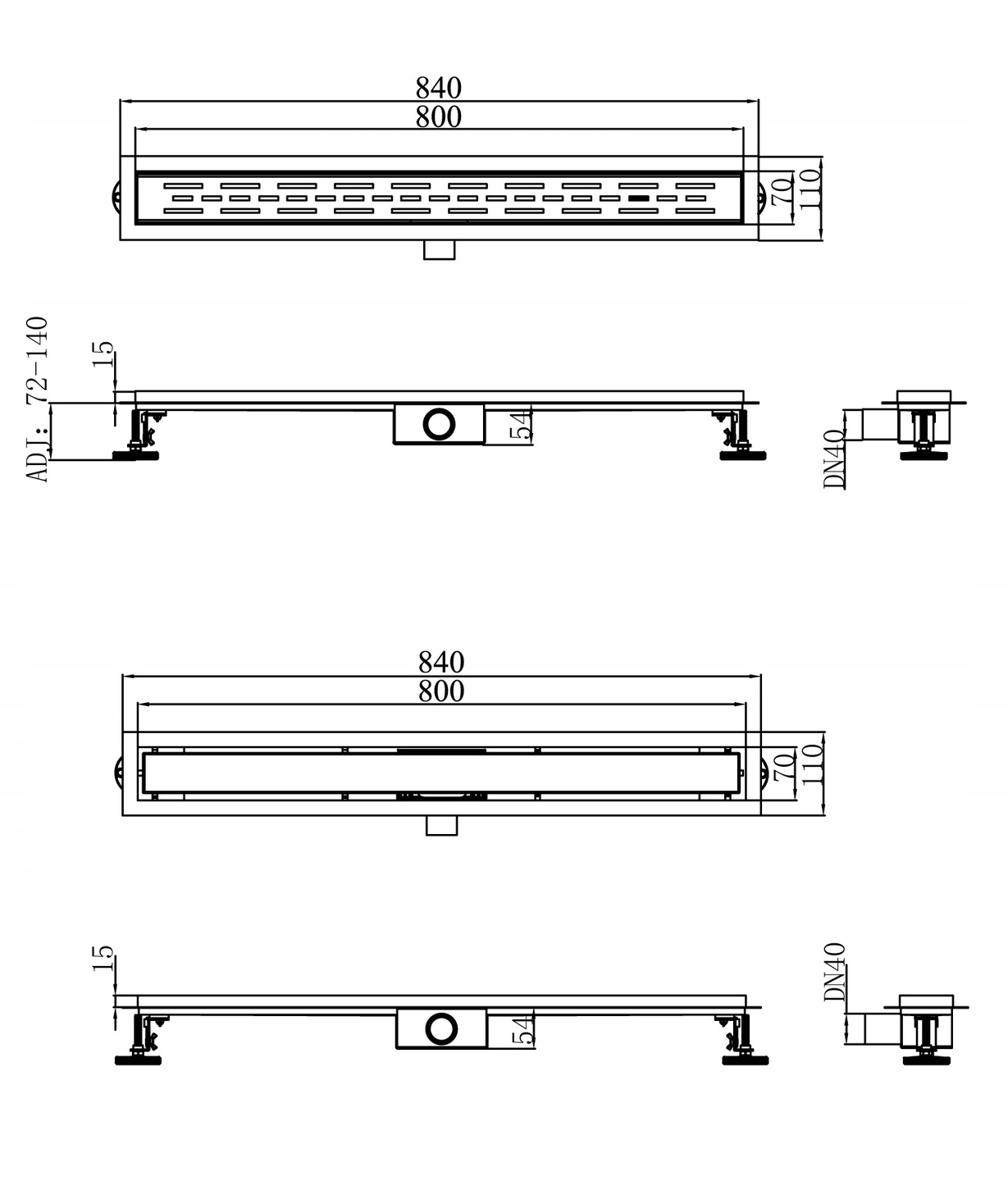 SCURGERE LINEARĂ ENTERO SUB PLACĂ 80 CM