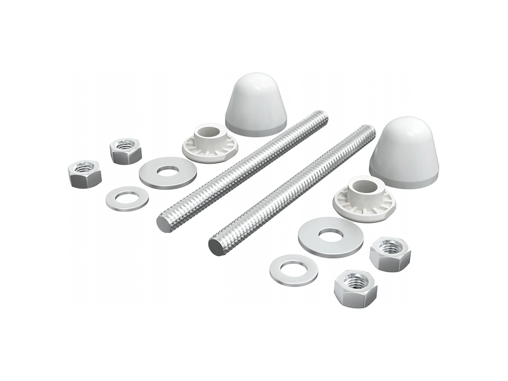 Zestaw elementów mocujących umożliwiających łatwy montaż misek WC do stelaża podtynkowego. W komplecie znajdują się elementy wymagane do prawidłowej i trwałej instalacji.